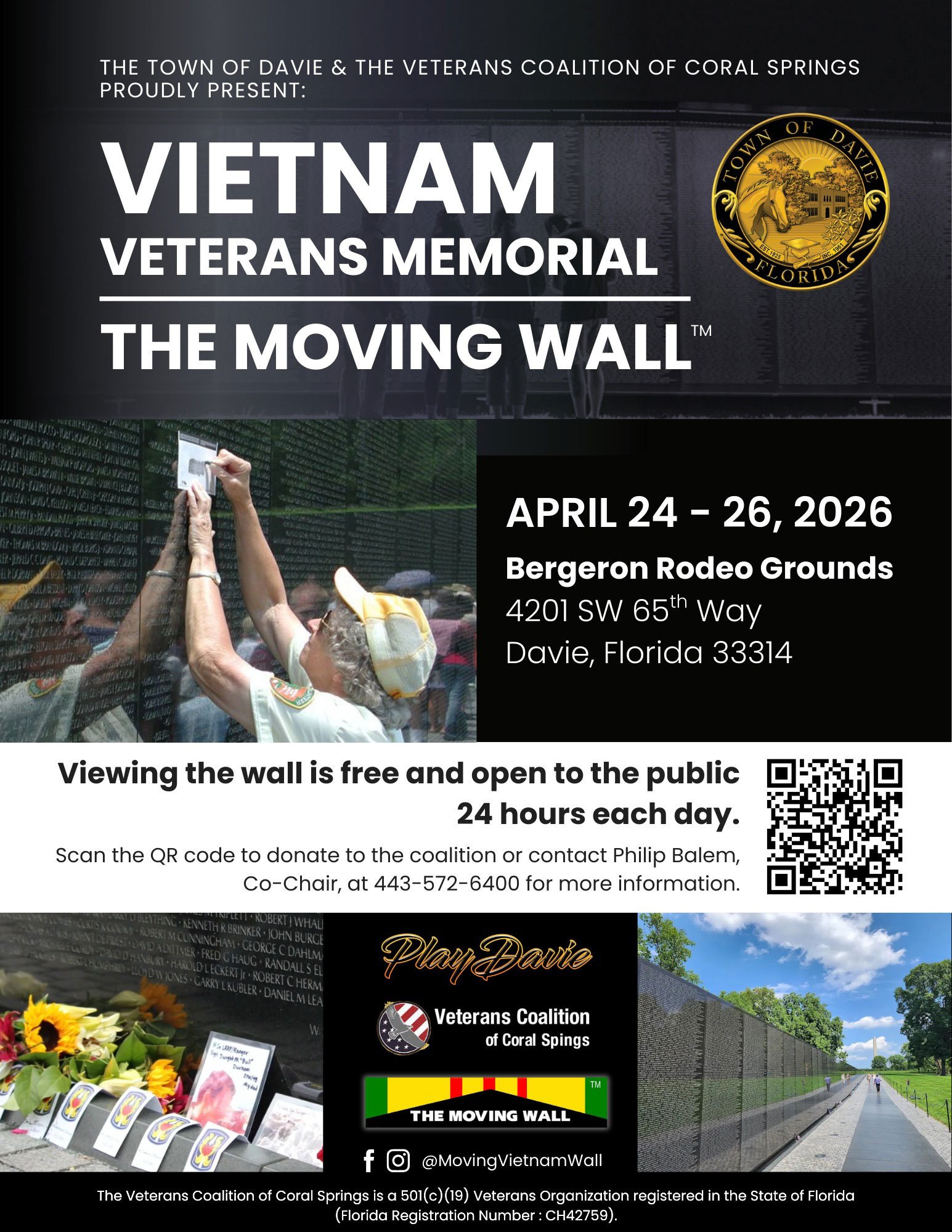 Please email Davie.Moving.Wall.2026@gmail.com if you are interested in volunteering. If you can sign up for a specific time slot please fill in your info on what time you would be available.